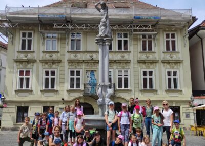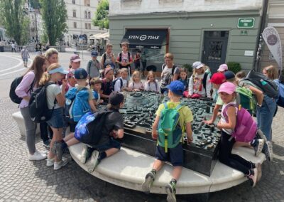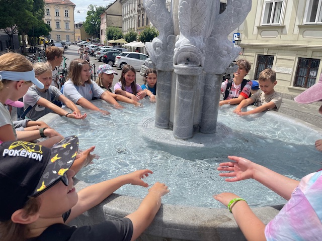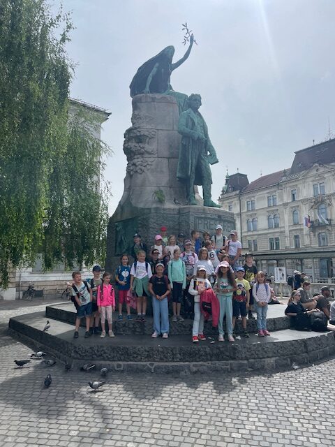 Der gemeinsame Ausflug unserer zweisprachigen SchülerInnen führte uns nach Ljubljana. Gleich nach der Ankunft stärkten wir uns bei einer Jausenpause beim Denkmal des slowenischen Nationaldichters France Prešeren. Danach ging es zur Besichtigung der Franziskanerkirche und auch das Relief der Stadt wurde von den Kindern genau betrachtet. Bei einem gemütlichen Spaziergang durch die charmante Altstadt entdeckten wir viele schöne Ecken und genossen das besondere Flair der Stadt. Ein Highlight war die Fahrt mit dem Bummelzug hinauf zur Burg, von wo aus wir einen tollen Ausblick über die Stadt hatten.