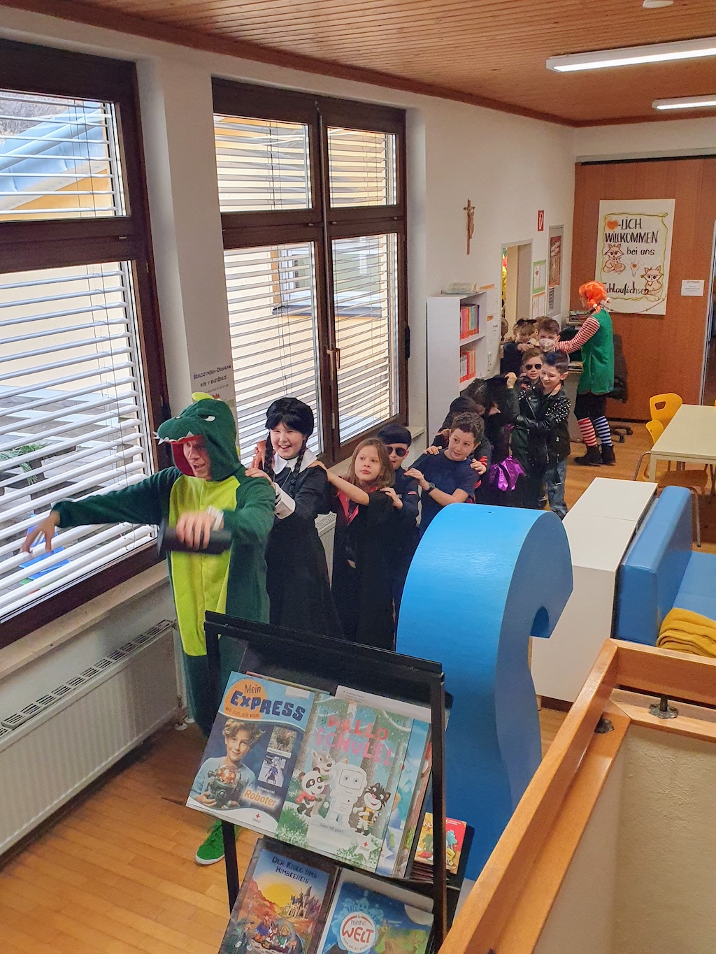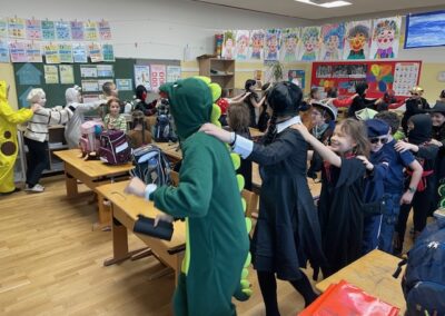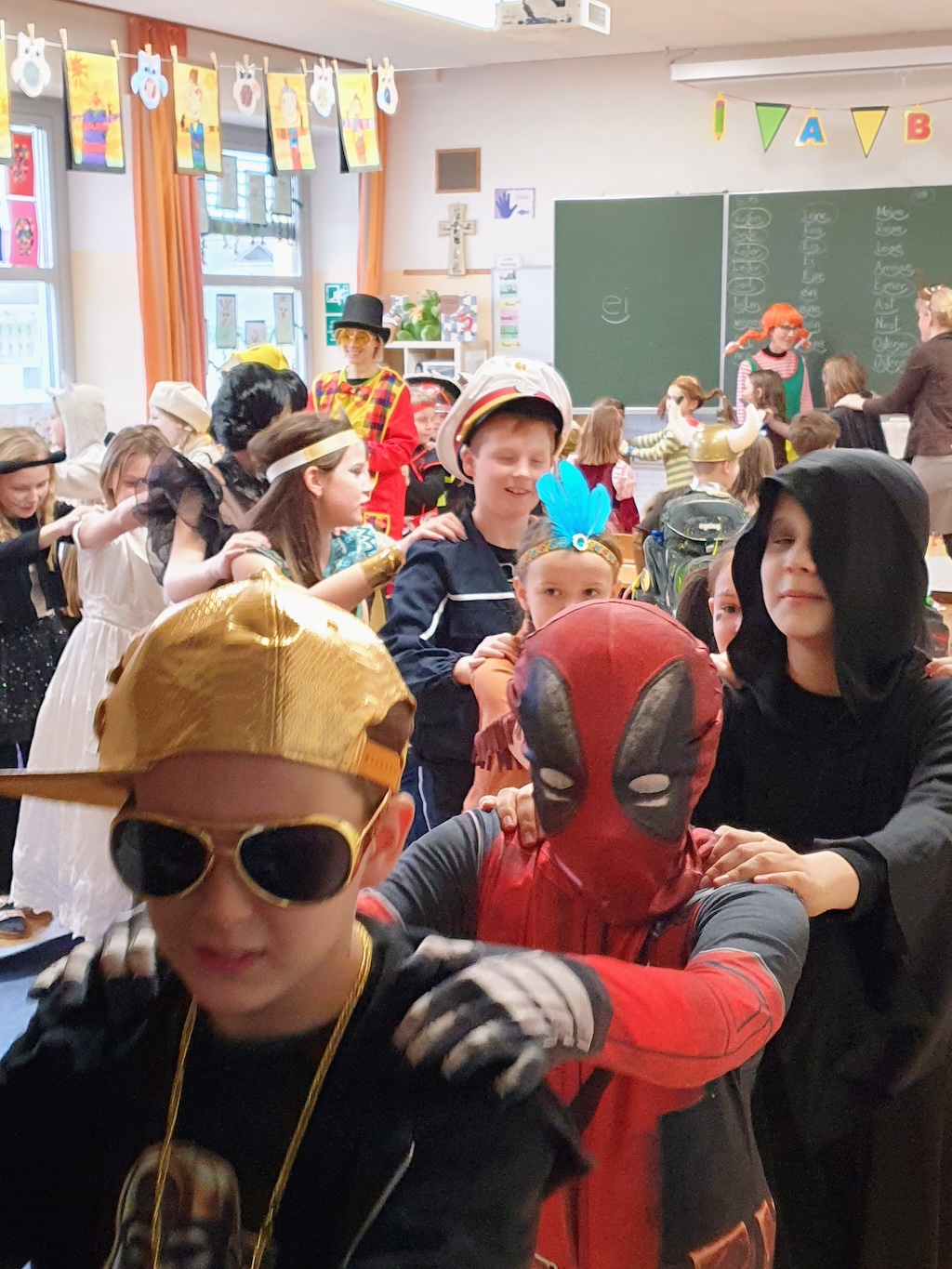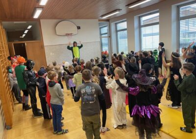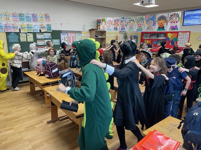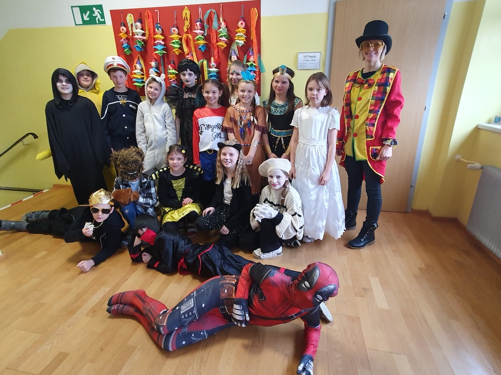 Was für ein lustiger Faschingsumzug durch die Schule! Mit Musik, Tanz und vielen lustigen Masken hatten wir jede Menge Spaß. Ein besonderes Highlight: Herr Lehrer alias „Dance Dino“ animierte alle Kinder zum Mittanzen und sorgte für großartige Stimmung!