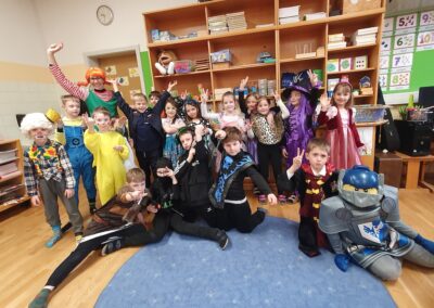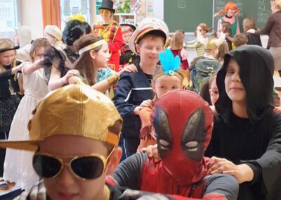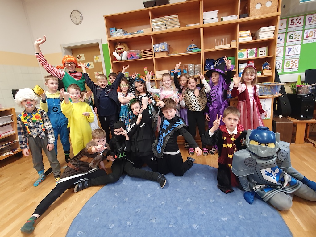 Kakšna vesela pustna povorka po šoli! V telovadnici smo rajali, plesali in se smejali. Poseben vrhunec: gospod učitelj alias „Plesni Dino“ je spodbudil vse otroke k plesu in poskrbel za odlično vzdušje!