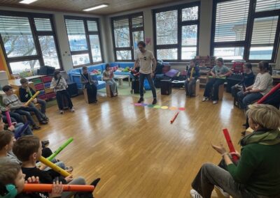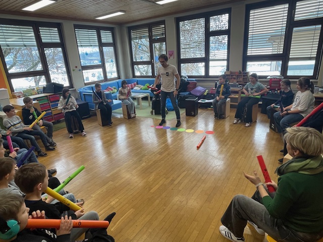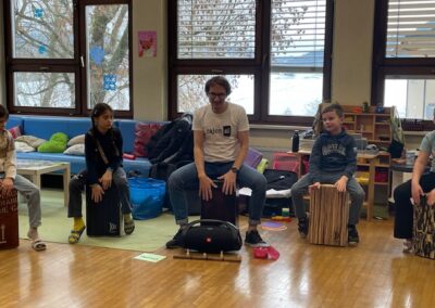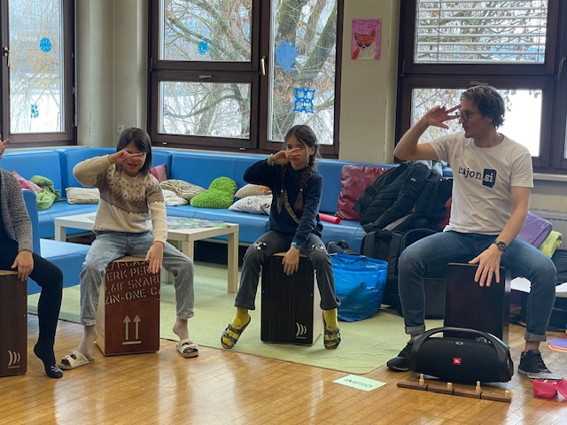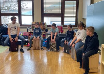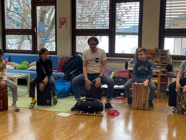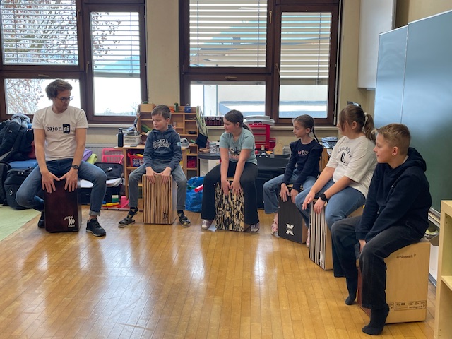 Der Trommelworkshop mit Jaka Strajnar und seinen Cajóns war ein voller Erfolg. Mit viel Energie und Begeisterung führte er die Schülerinnen und Schüler in die Welt der Rhythmen ein. Die Kinder arbeiteten konzentriert mit und hatten sichtlich Freude daran, gemeinsam zu musizieren.