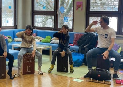 Die mitreißenden Beats und abwechslungsreichen Übungen kamen bei den Schülerinnen und Schülern sehr gut an. Der Workshop zeigte eindrucksvoll, wie Musik Gemeinschaft fördert und Rhythmus verbindet.